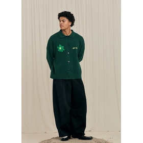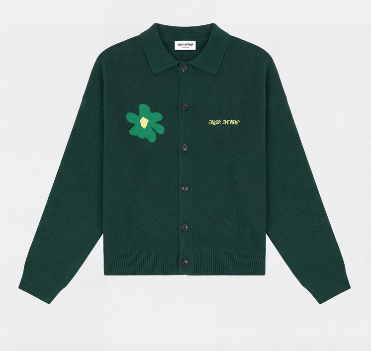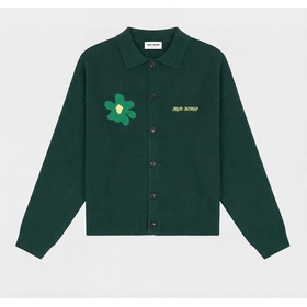 green flower polo knit